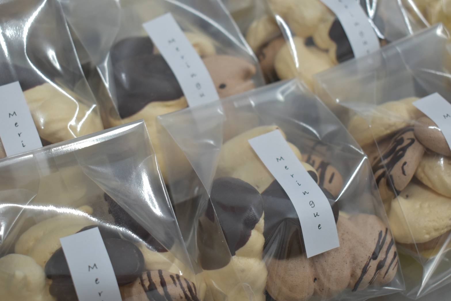 人気のメレンゲクッキーにオーガニックビターチョコレートをディップした