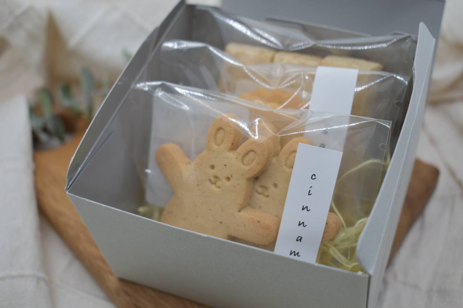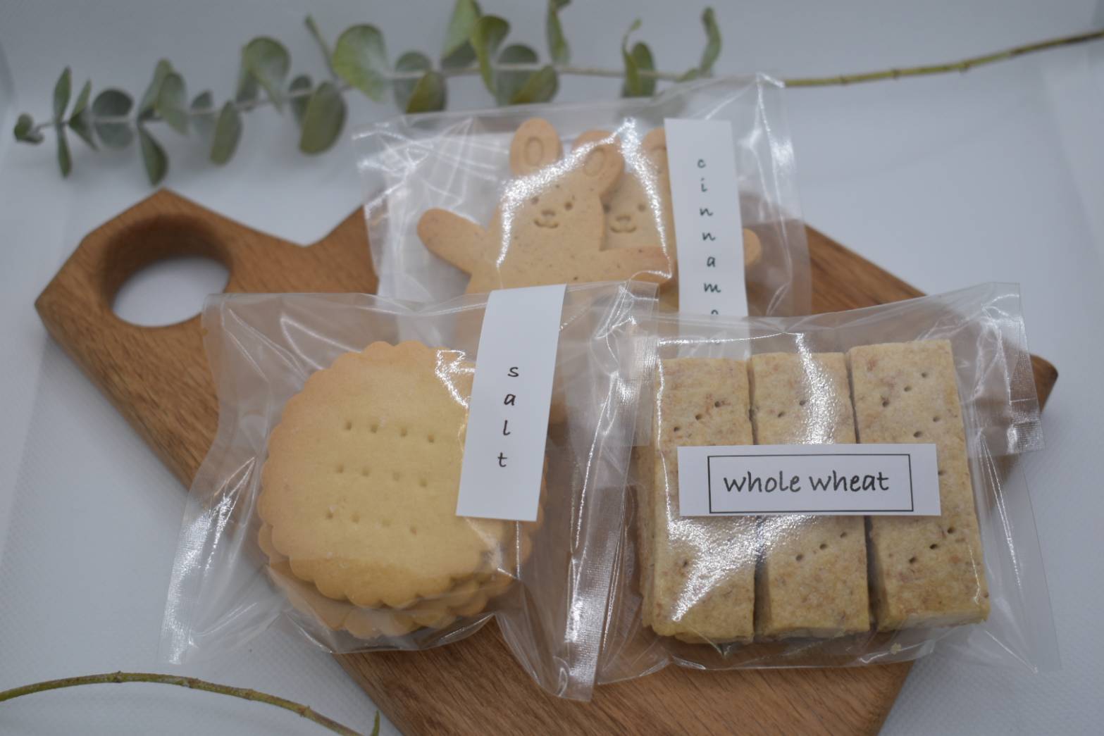 塩クッキー、シナモンクッキー、全粒粉のショートブレッドの3種が